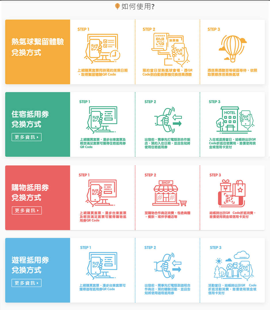本次台東縣政府推出的「線上繫留體驗預約套票」,串聯了台東各大知名旅宿、伴手禮與在地特色體驗店家,藉由多元消費券的方式,提供自由行旅客一個豐富完整的深度旅遊產品。超過30家旅宿合作業者、超過13家