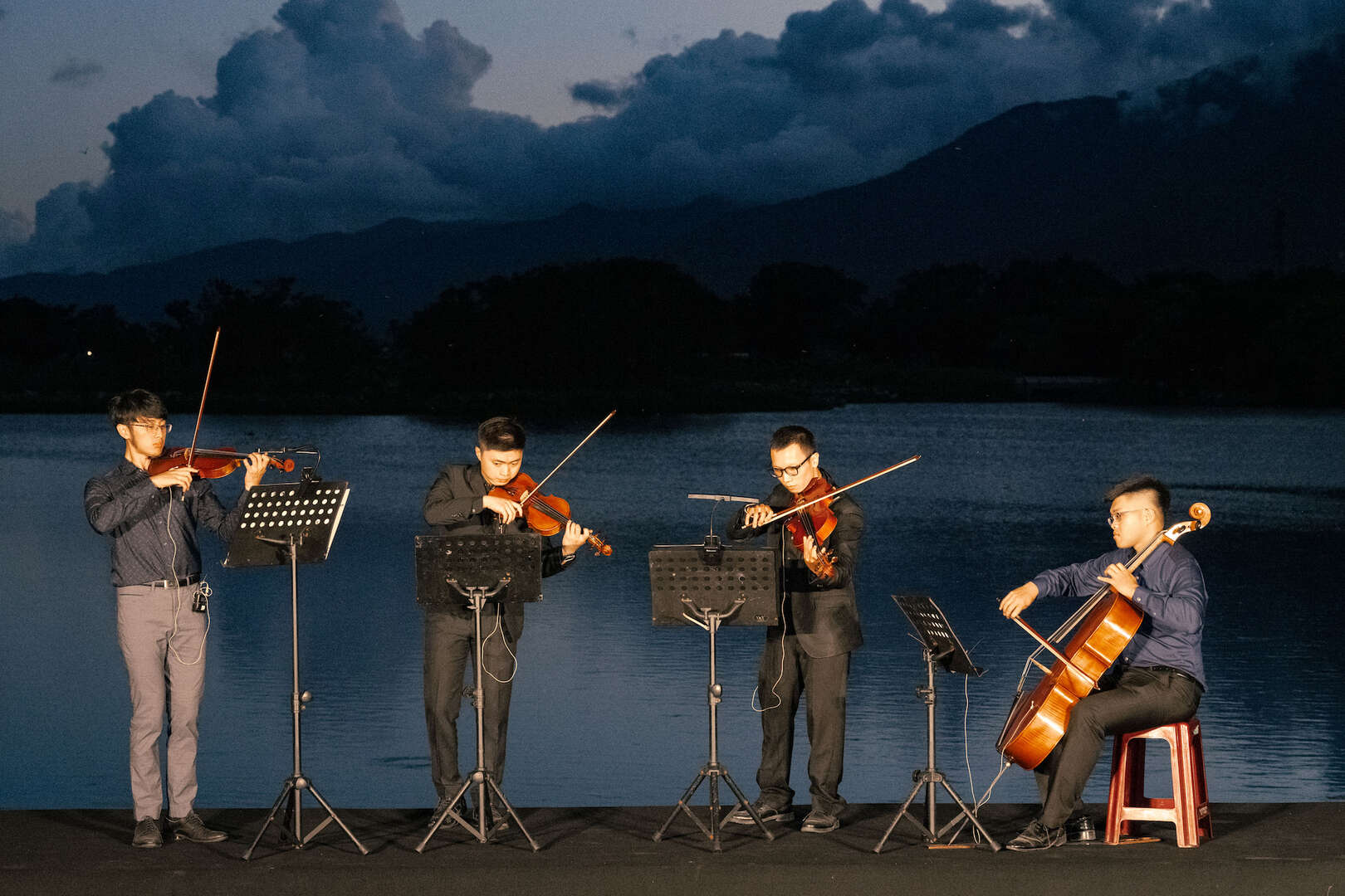 甫獲民眾認證非來不可的「2024臺灣國際熱氣球嘉年華」7月6日在臺東鹿野高台正式開幕後,3天來已吸引逾4萬名球迷湧入鹿野高台,今年熱氣球光雕音樂會也創下歷年最多的12場次,眾所矚目的池上大坡池光雕音樂會也於8日晚上七點熱鬧登場,熱氣球倒映於湖面上伴隨音樂閃爍,臺東大學「弦音雅集」以優雅樂音開場,進行弦樂伴奏,民眾直呼氣氛到位,最後壓軸由池上鄉公所加碼的高空煙火秀結尾,在盛夏的夜晚,帶給現場5千名觀眾唯美又浪漫的感官饗宴。