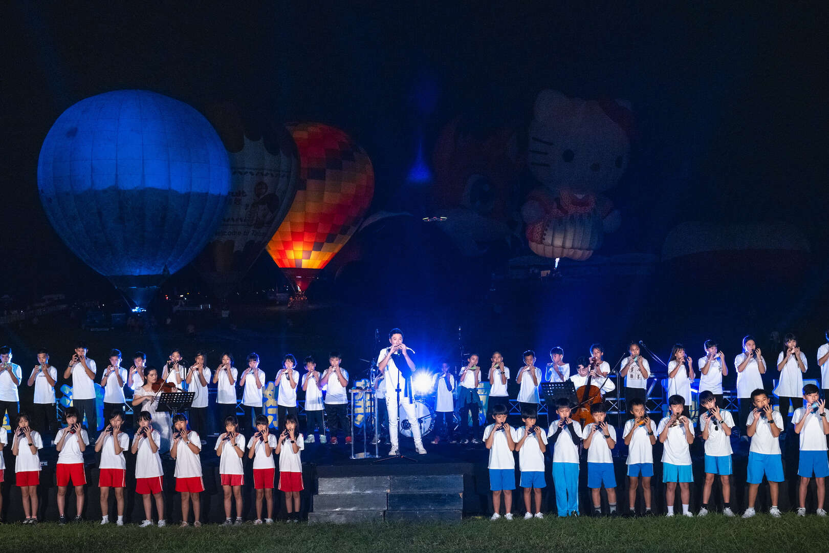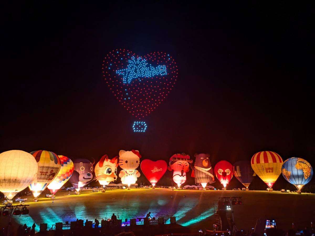 臺東縣政府表示,昨晚活動特別邀請在地鹿野國小與國立臺北教育大學附設實驗國民小學,共約50位小朋友組成「鹿野夢想陶笛隊」,帶來多首輕快又歡樂的曲目,為活動揭開序幕,而甫結束於夏威夷第十三屆太平洋藝術節演出的「東布青樂團」,也以當代原創天籟歌聲分享來自布農族的文化與故事,活動的重頭戲「熱氣球FEAT無人機」在三麗鷗人氣巨星Hello Kitty、美樂蒂、大耳狗喜拿、布丁狗、酷企鵝及臺東天后宮媽祖球等圖案相繼亮相後,再度出現驚喜QRcode條碼,現場觀眾舉起手機掃描,有機會獲得限定版熱氣球小球。