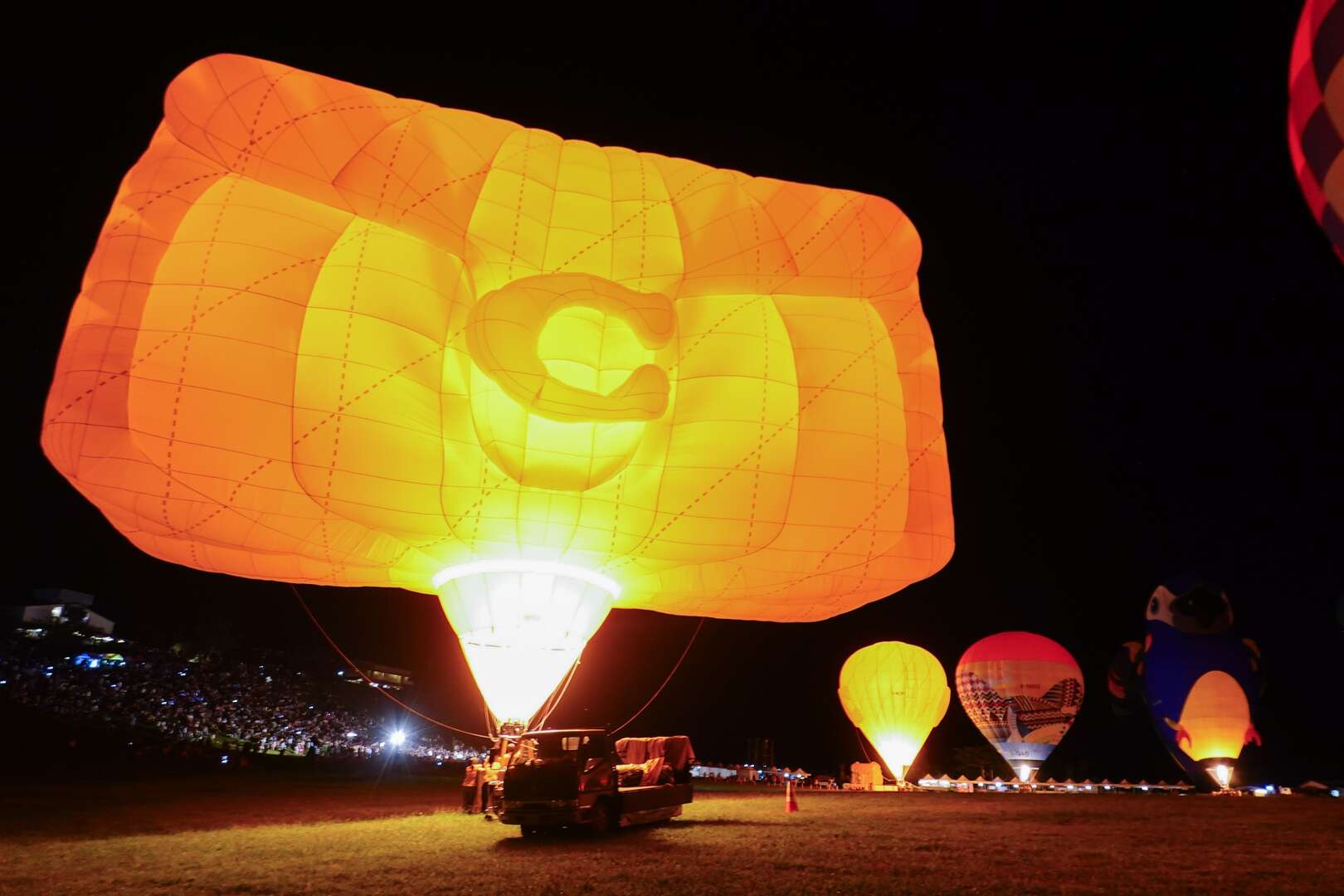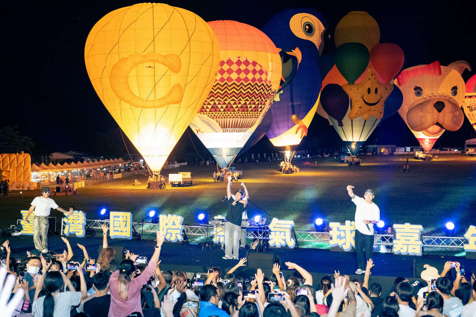 昨晚光雕活動以音樂「星期五晚上」熱鬧開場,臺東在地團隊「卑南青春歌隊」及街舞團體「KEEP DANCE STUDIO」炒熱現場氣氛,球迷期待的熱氣球光雕音樂會以「海、陸、空之動物夜」為主題,由德國海豹奧斯卡、日本小熊貓、英國貝菈狗狗、巴西的鸚鵡等13顆熱氣球搭配無人機及煙火,地面熱氣球與空中無人機相互映襯,三麗鷗明星家族無人機圖案搭配高空煙火綻放天空之際,現場歡聲雷動,場面震撼人心。壓軸演出由本土嘻哈天團玖壹壹唱出多首台式電音舞曲,現場粉絲留連忘返,連兩天的熱氣球光雕音樂會也在全場觀眾歡呼雀躍中畫下句點。