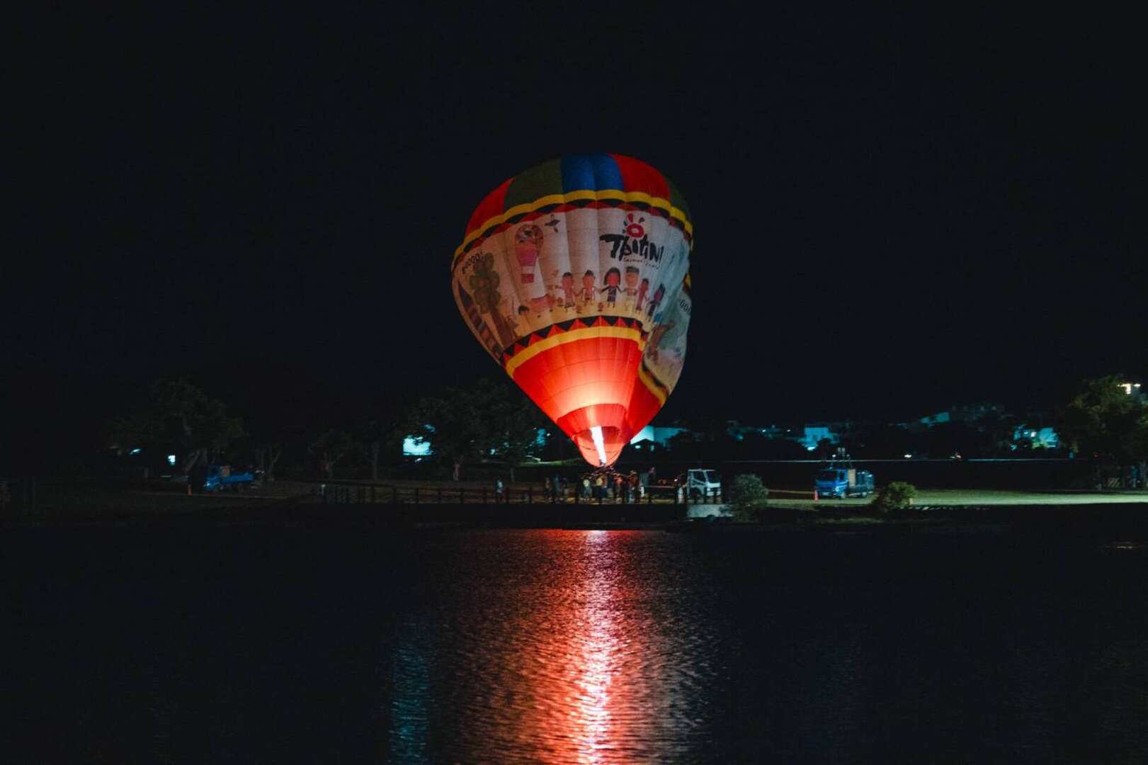 颱風前夕浪漫不退!2025池上大坡池光雕音樂會 熱氣球球籃噴火搭配煙火點亮夜空
