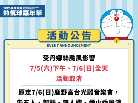 受丹娜絲颱風影響 7/5下午場、7/6全日活動取消