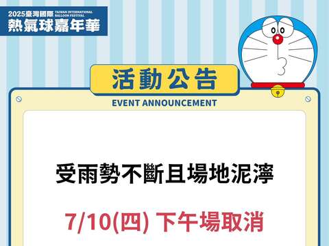 受雨勢不斷且場地泥濘 7/10(四)下午場活動取消