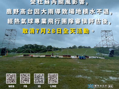 杜蘇芮颱風侵台 熱氣球主場地鹿野高台7/28全日活動取消